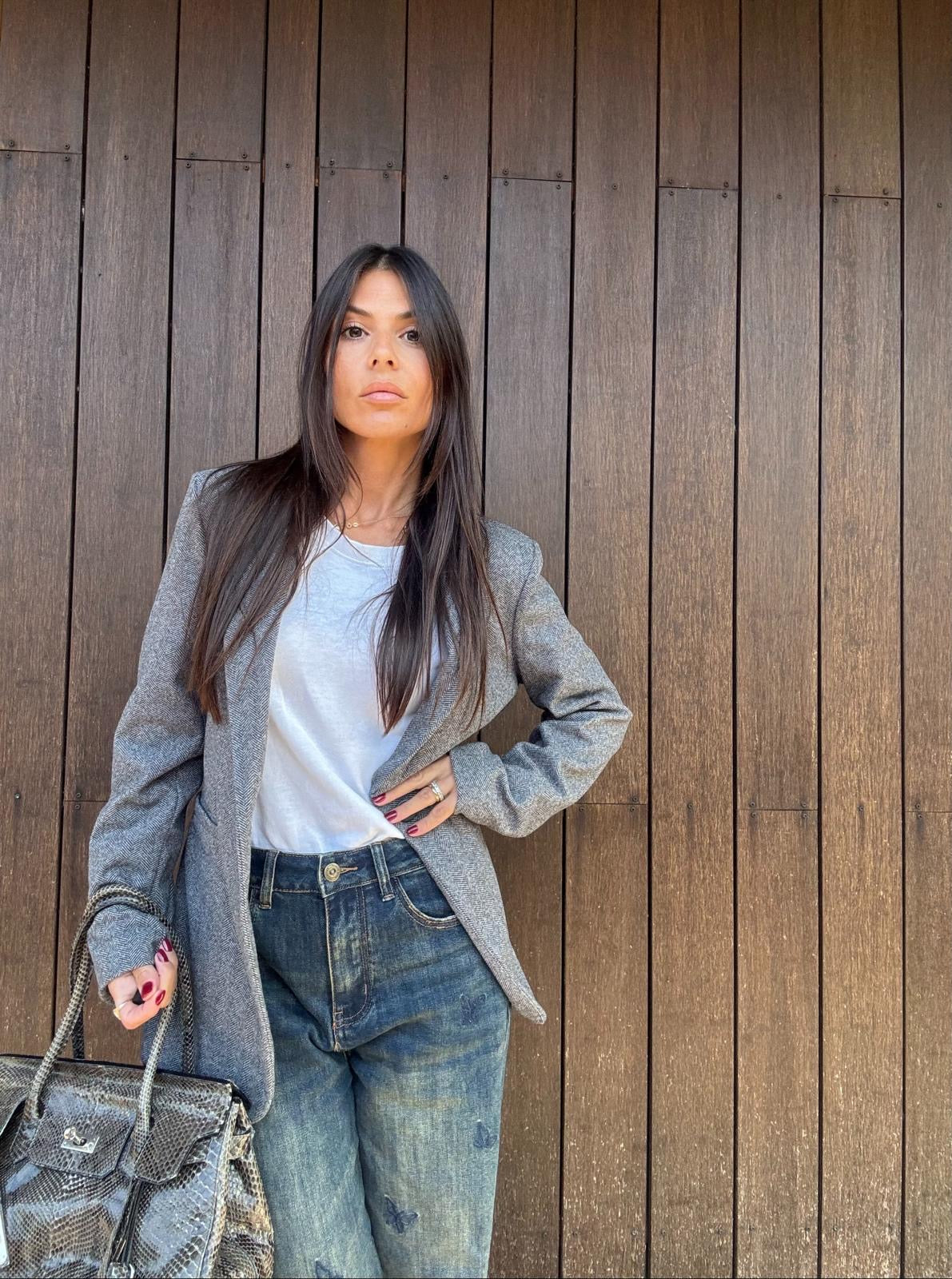 Blazer Grigio in Tessuto Spigato Stile essenziale. Eleganza quotidiana. Versatilità senza tempo.