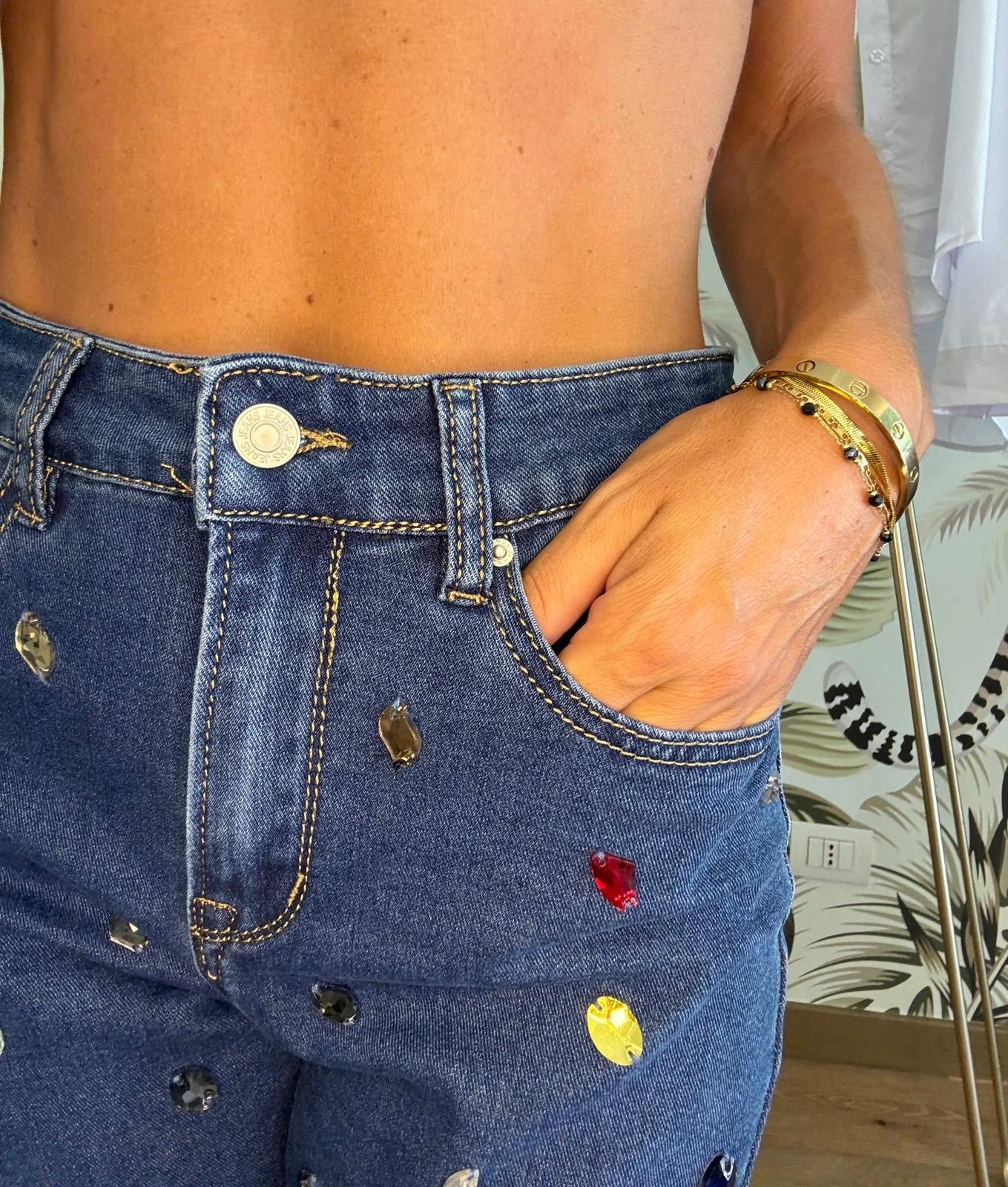 Upgrade your casual wardrobe with these chic denim jeans, adorned with colorful embroidered details. These mid-rise jeans feature a slim fit that flatters your silhouette, while the playful pops of color add a fun, stylish touch. Perfect for pairing with your favorite tops, these jeans effortlessly blend comfort with a trendy edge, making them a must-have for any fashion-forward closet.